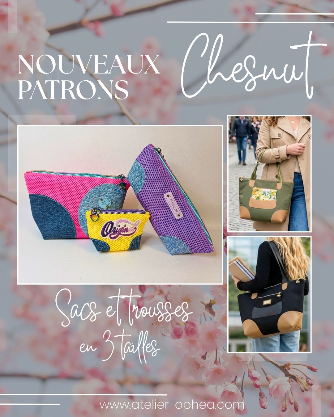 Un tout nouveau patron parfait pour le printemps, voilà CHESNUT, un sac avec sa trousse amovible réalisable en 3 tailles.