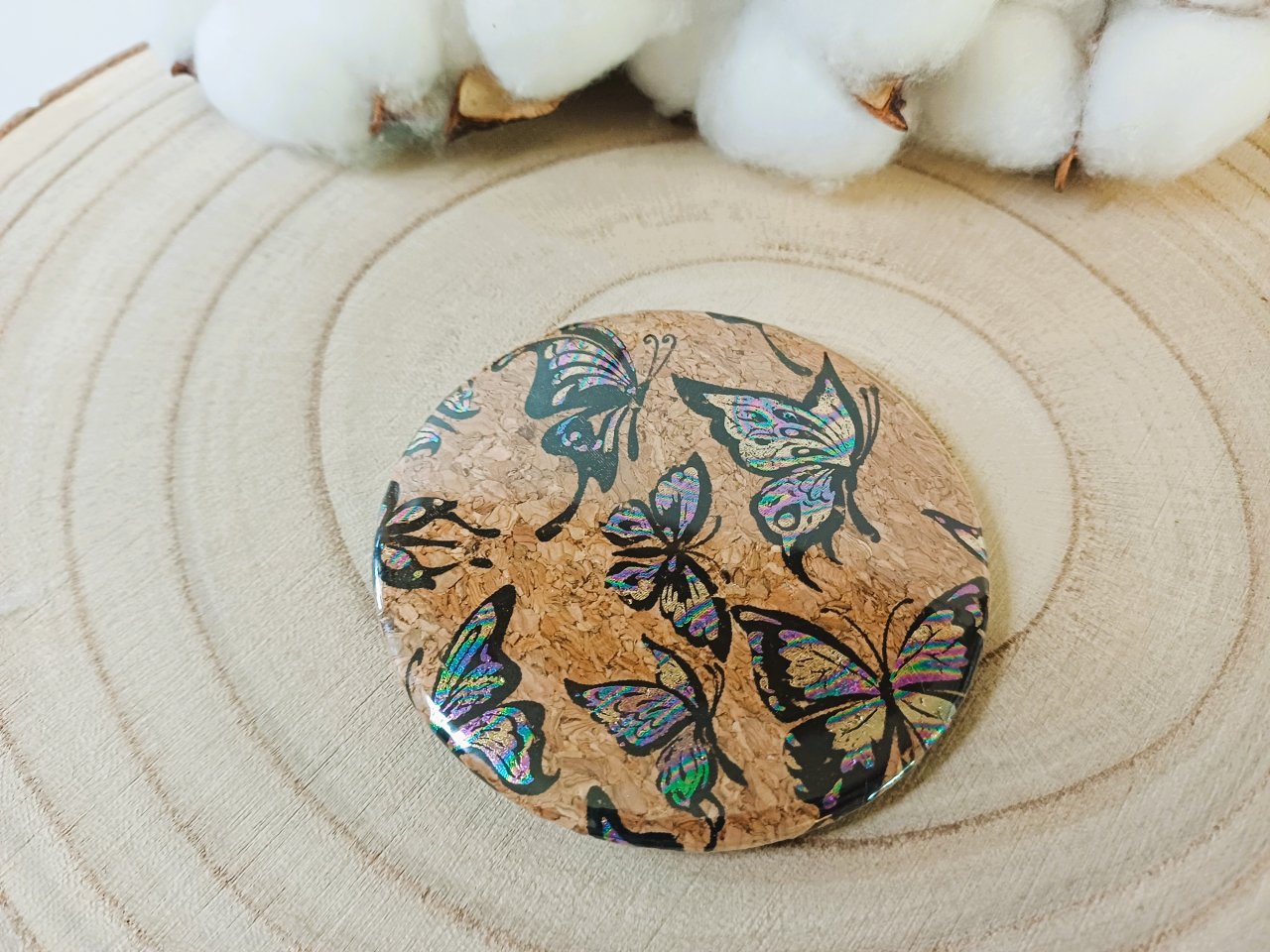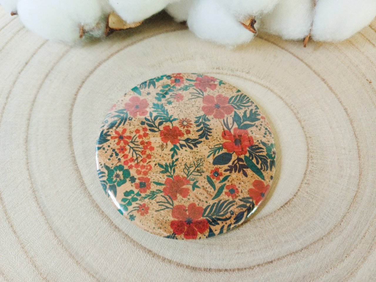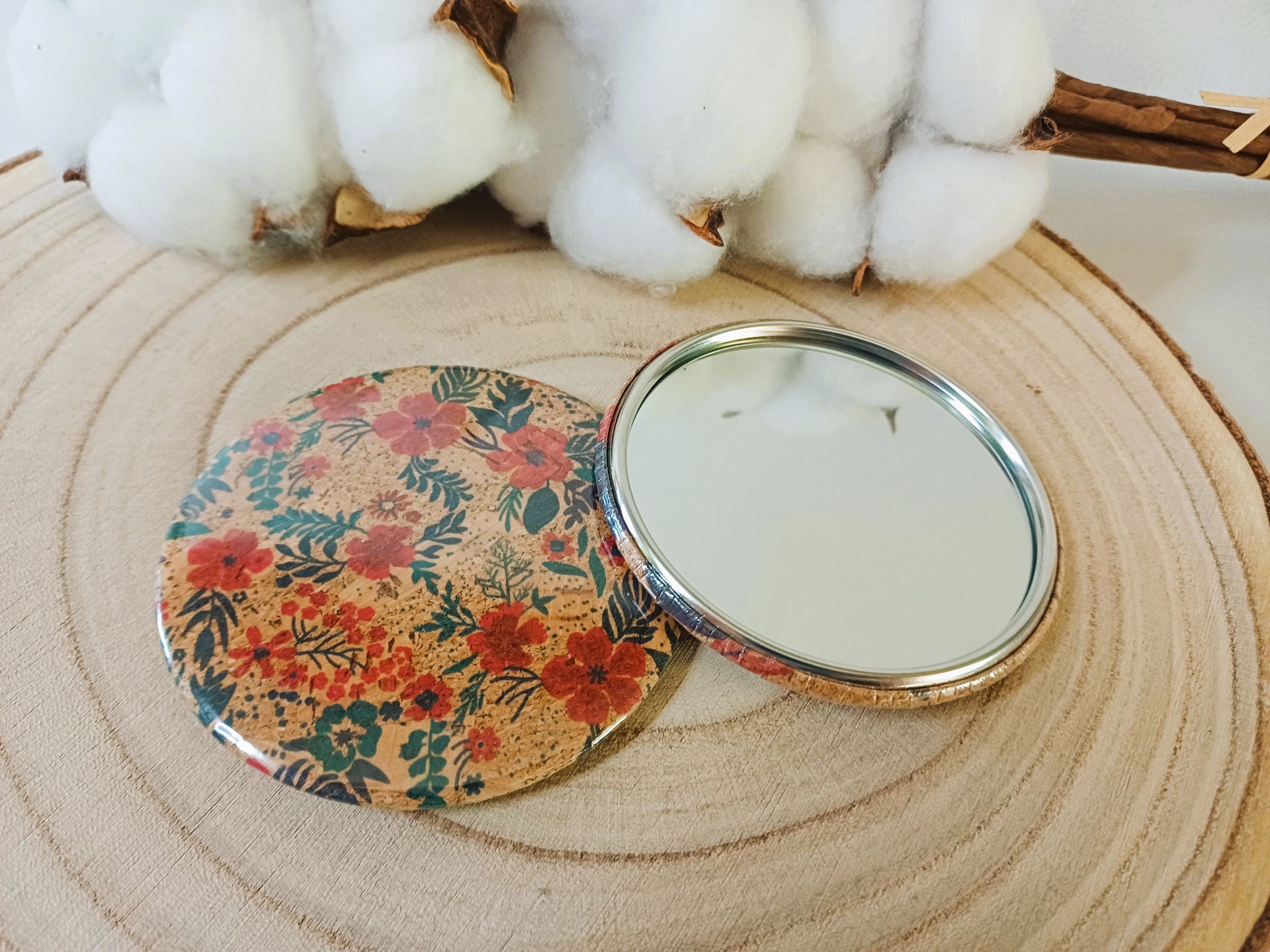 Miroir de sac avec au dos un liège à motif - coloris au choix