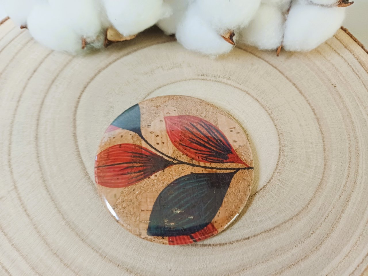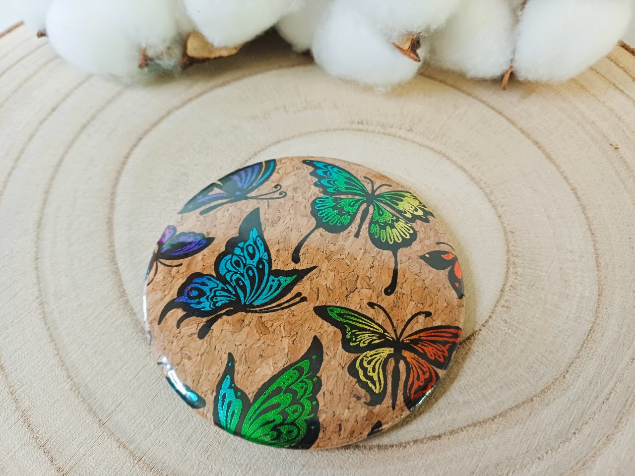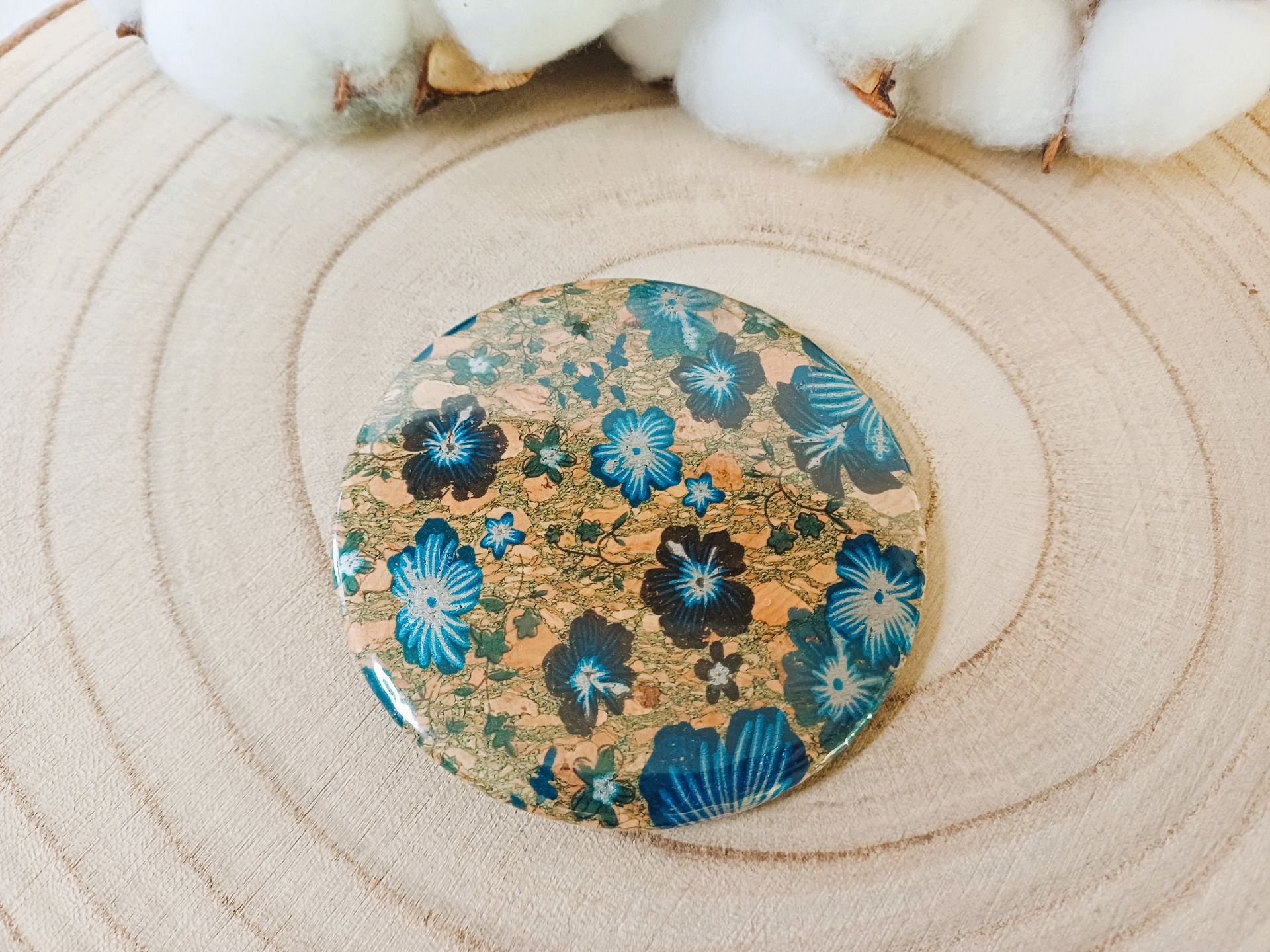 Miroir de sac avec au dos un liège à motif - coloris au choix
