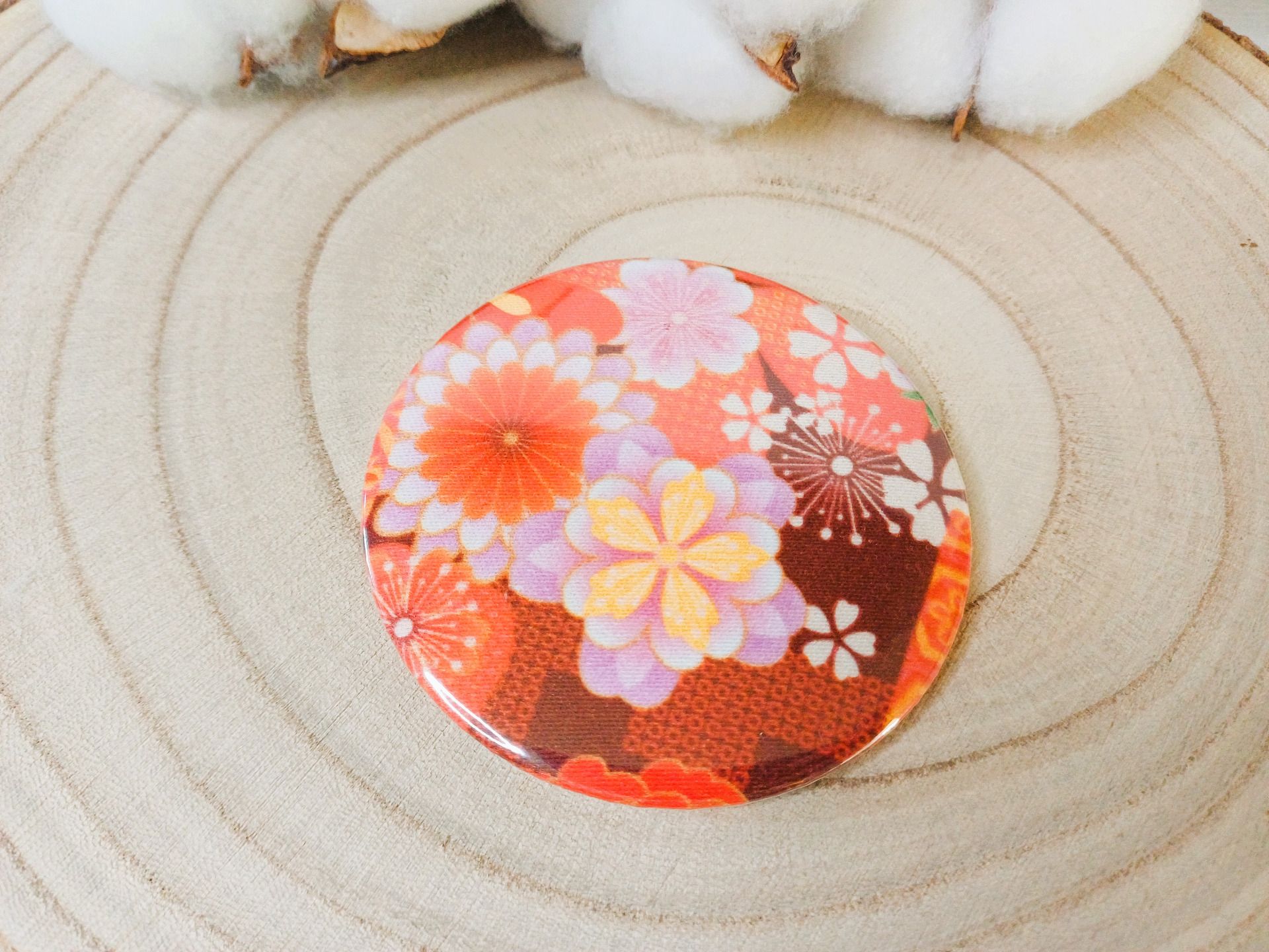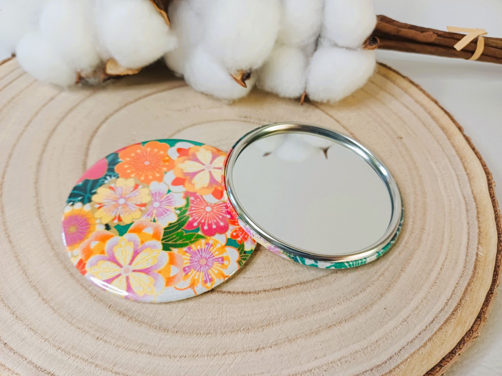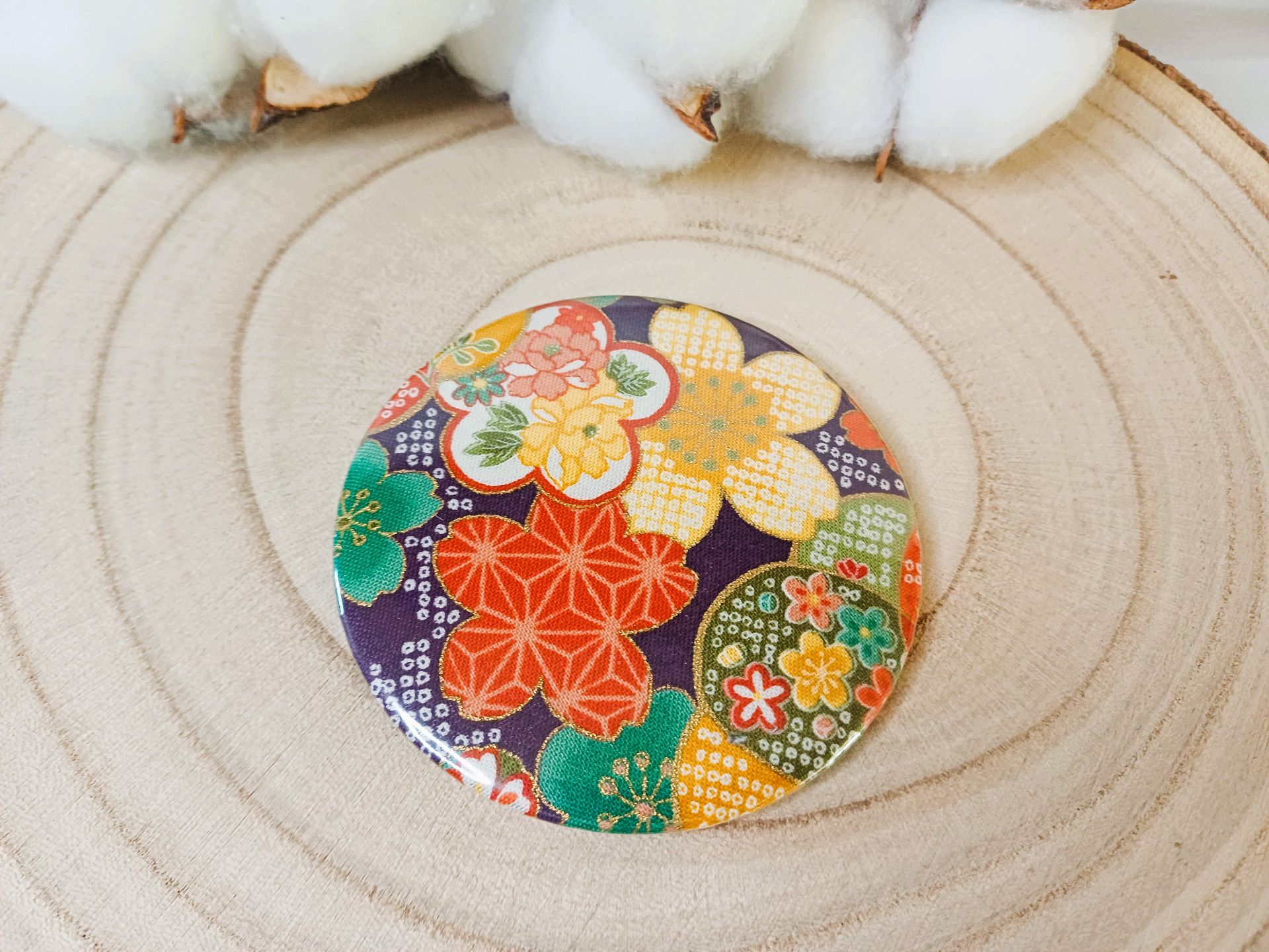 Miroir de sac avec au dos un tissu japonais - coloris au choix