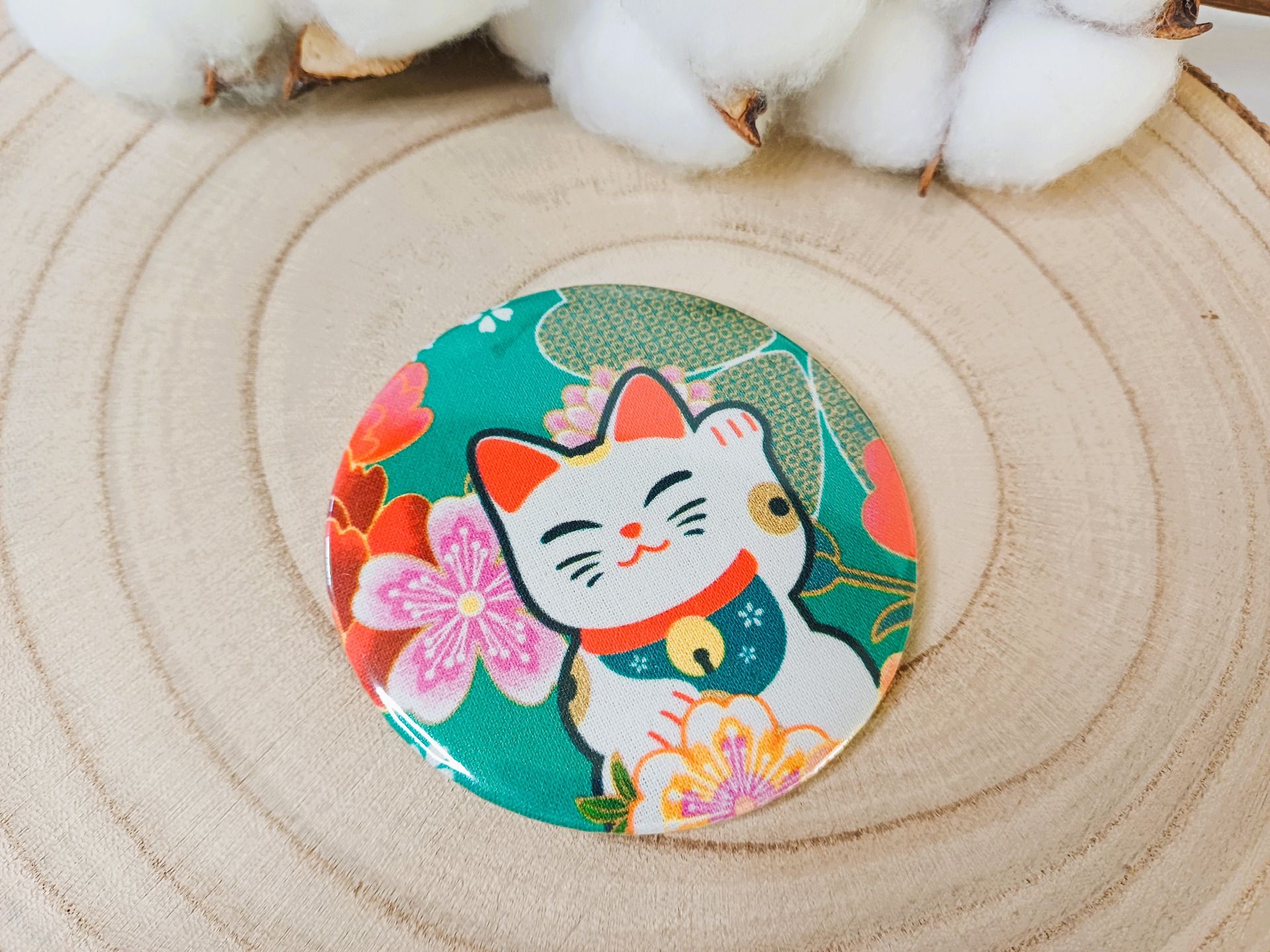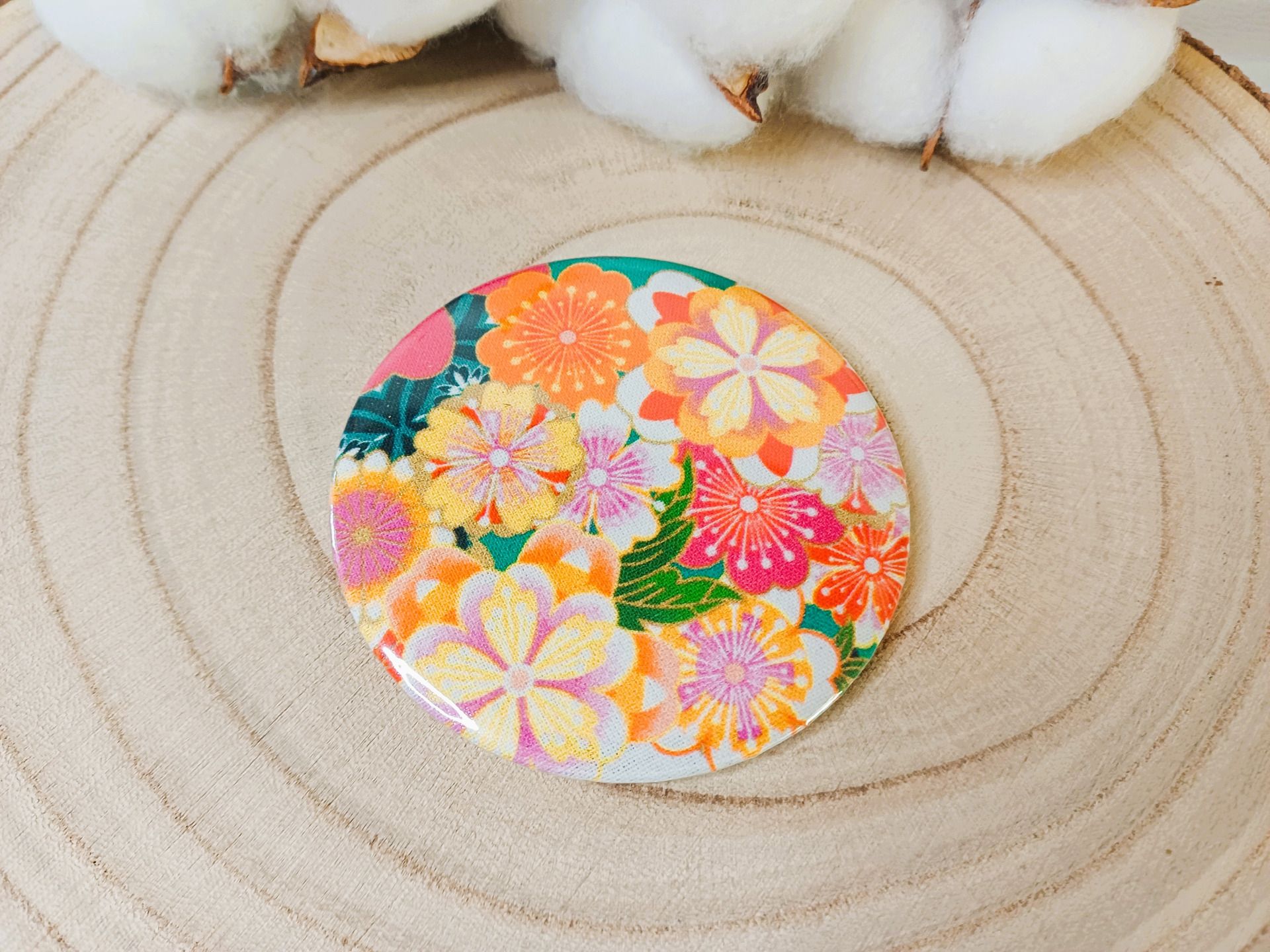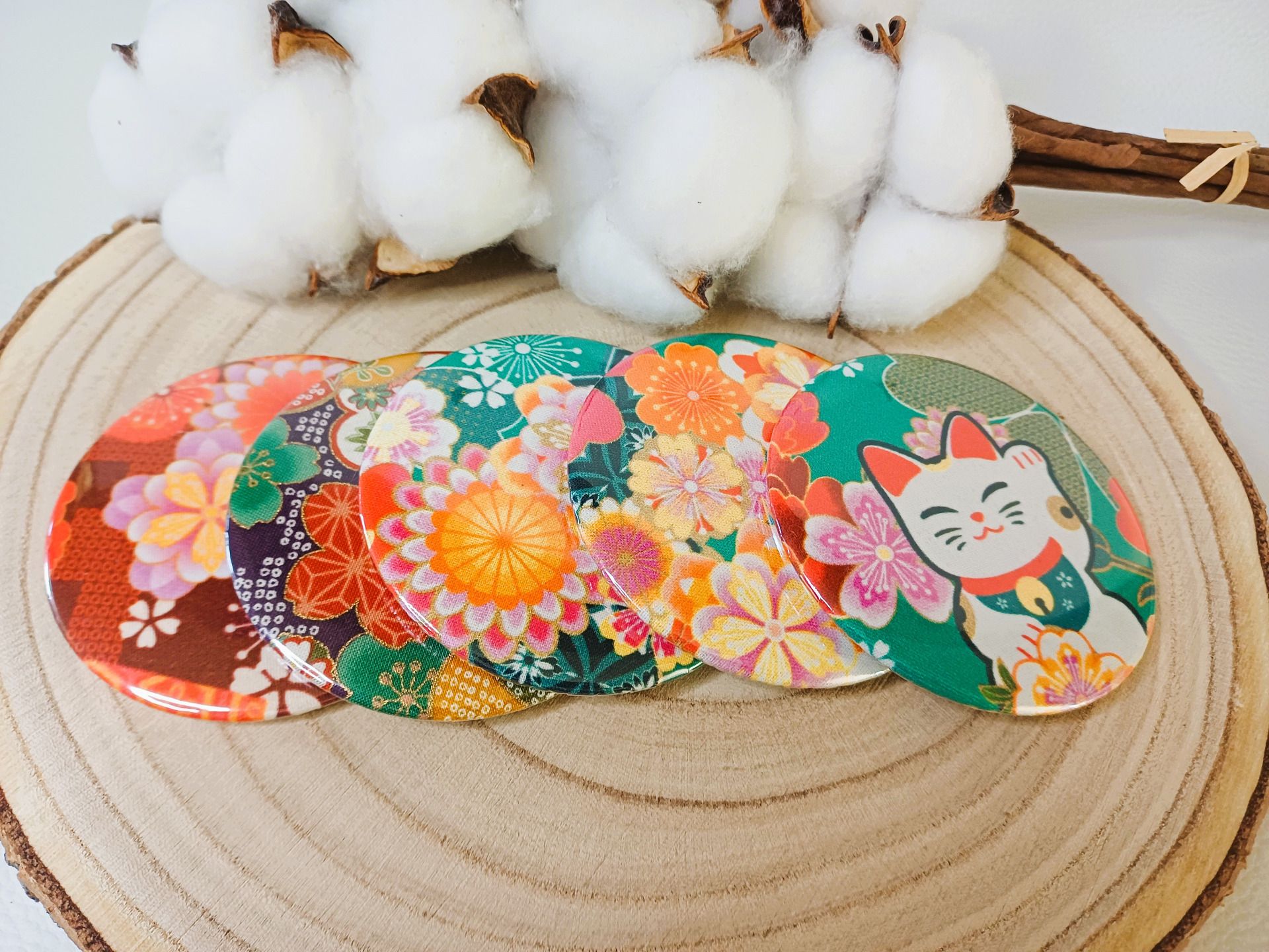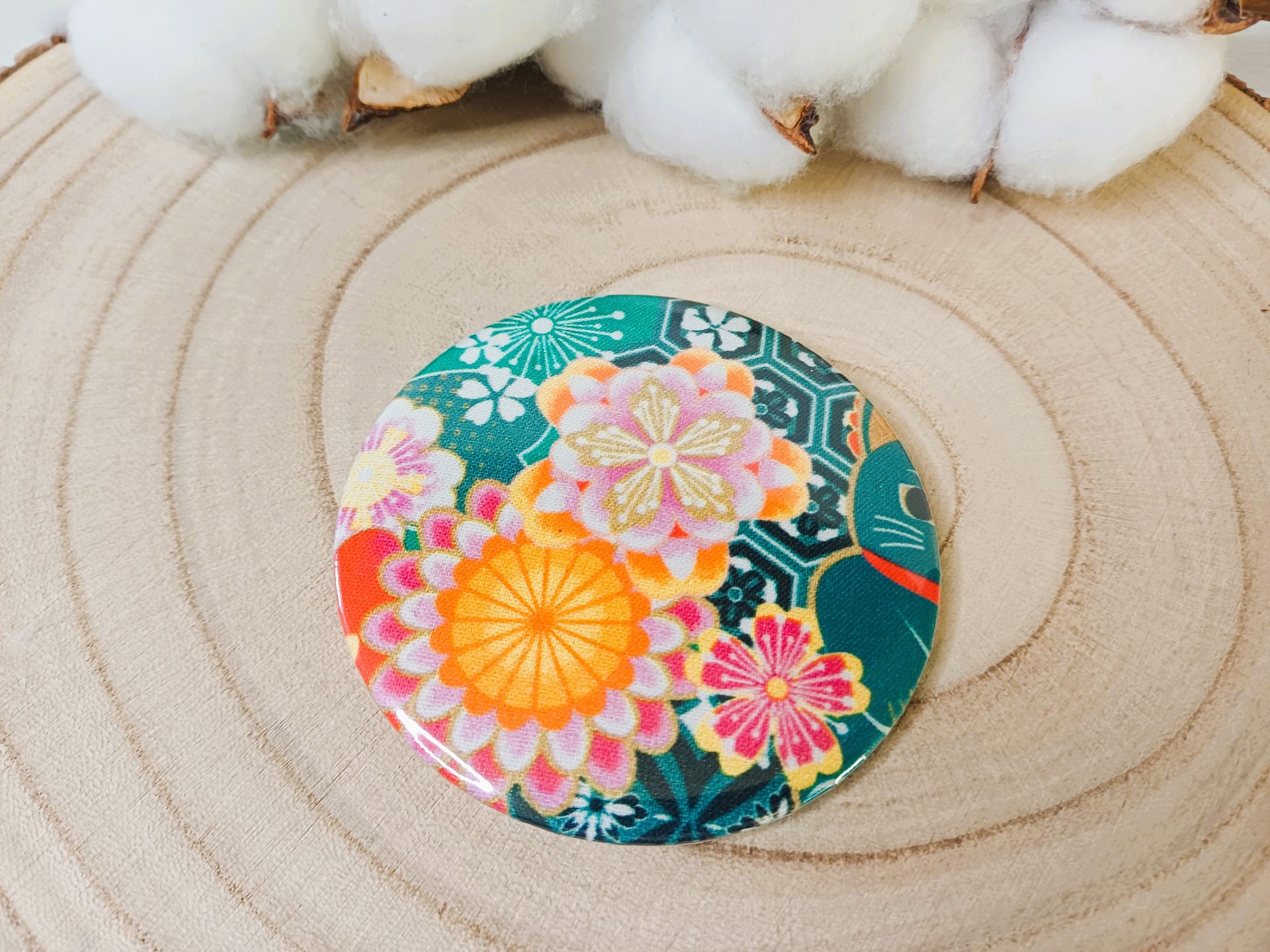 Miroir de sac avec au dos un tissu japonais - coloris au choix
