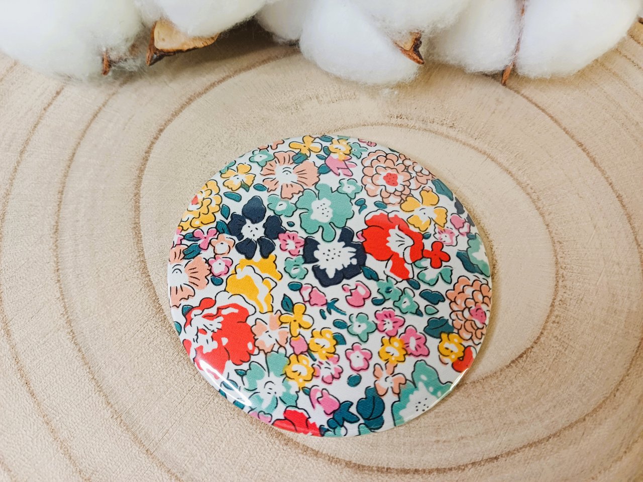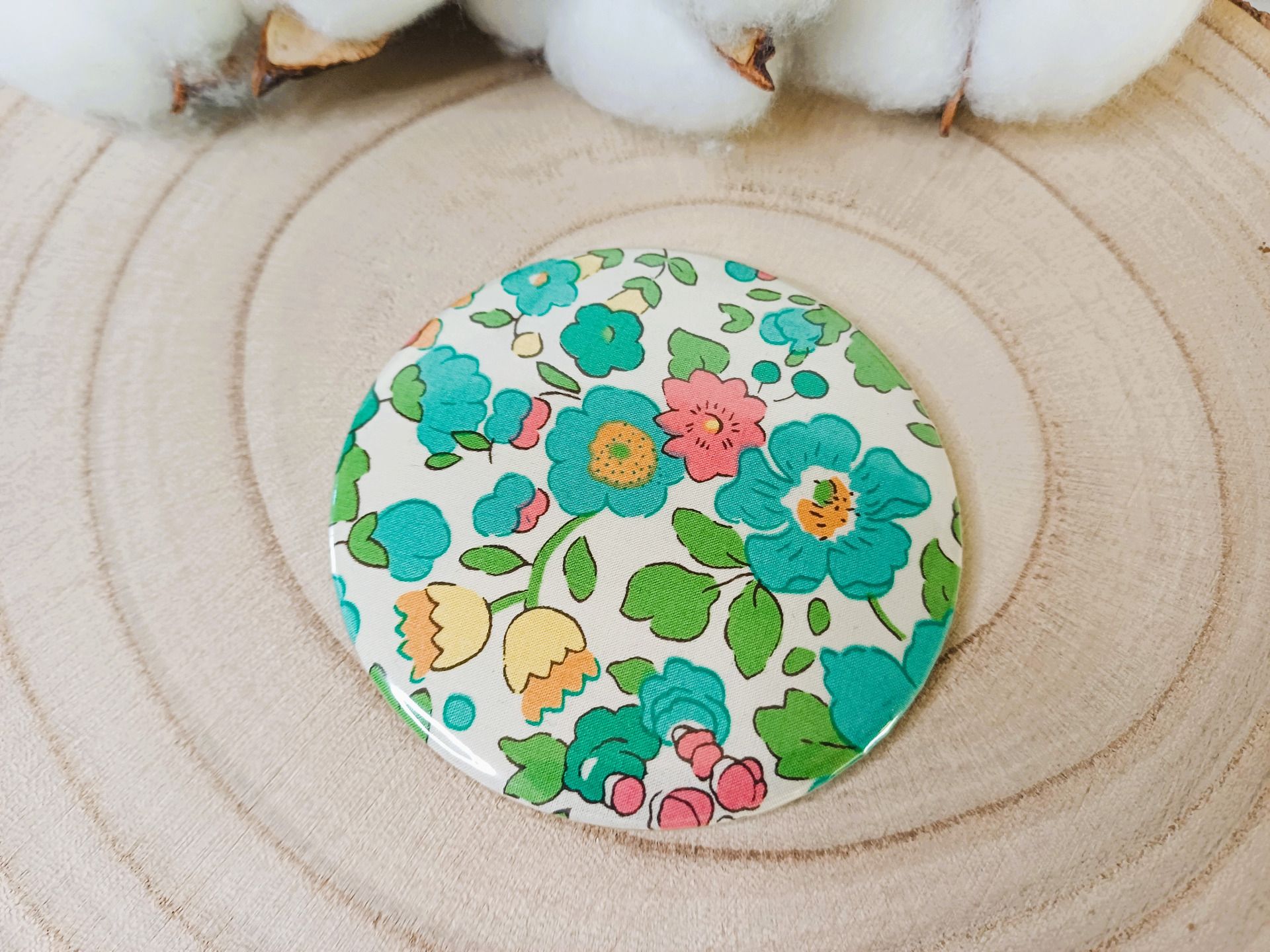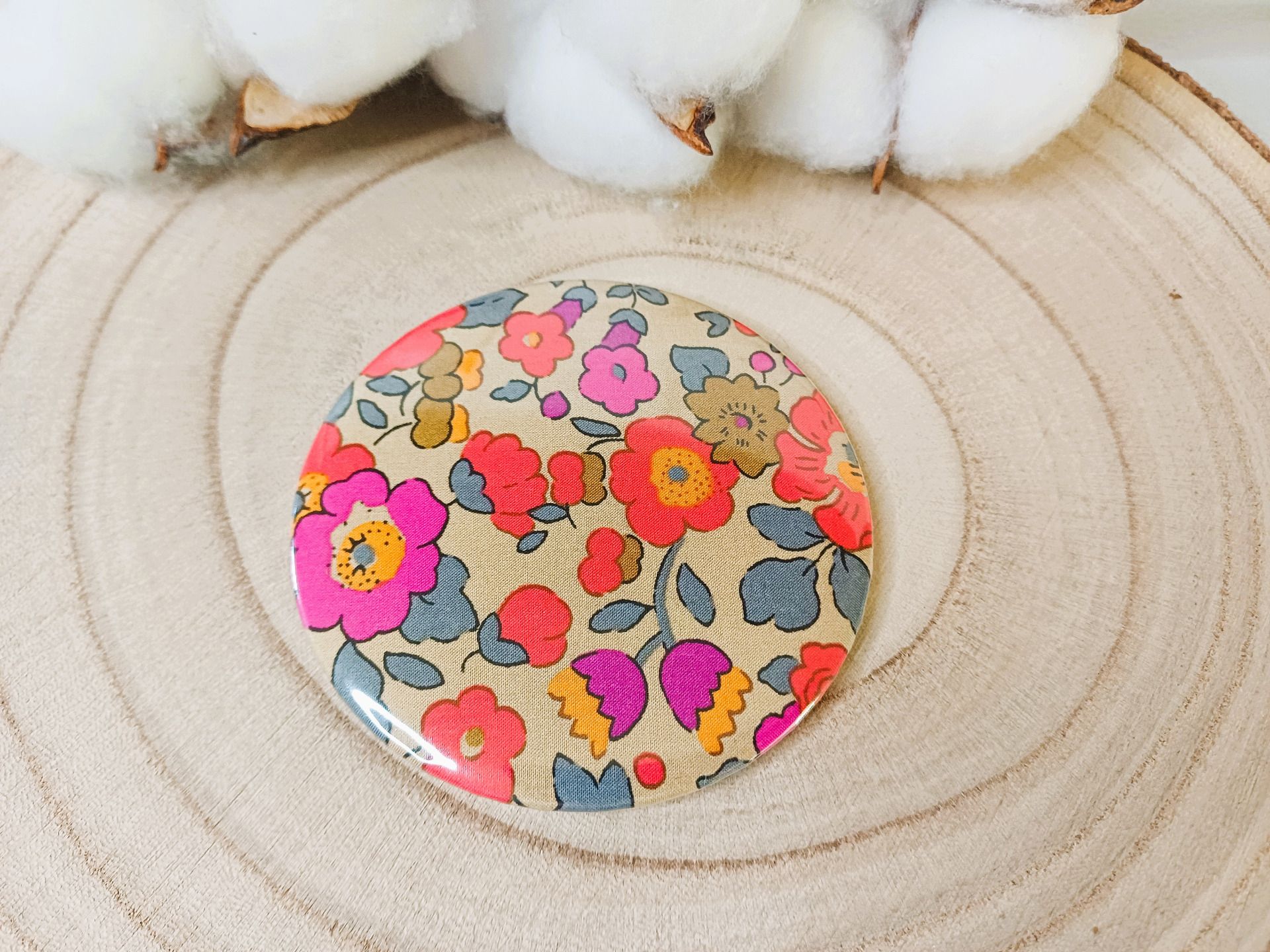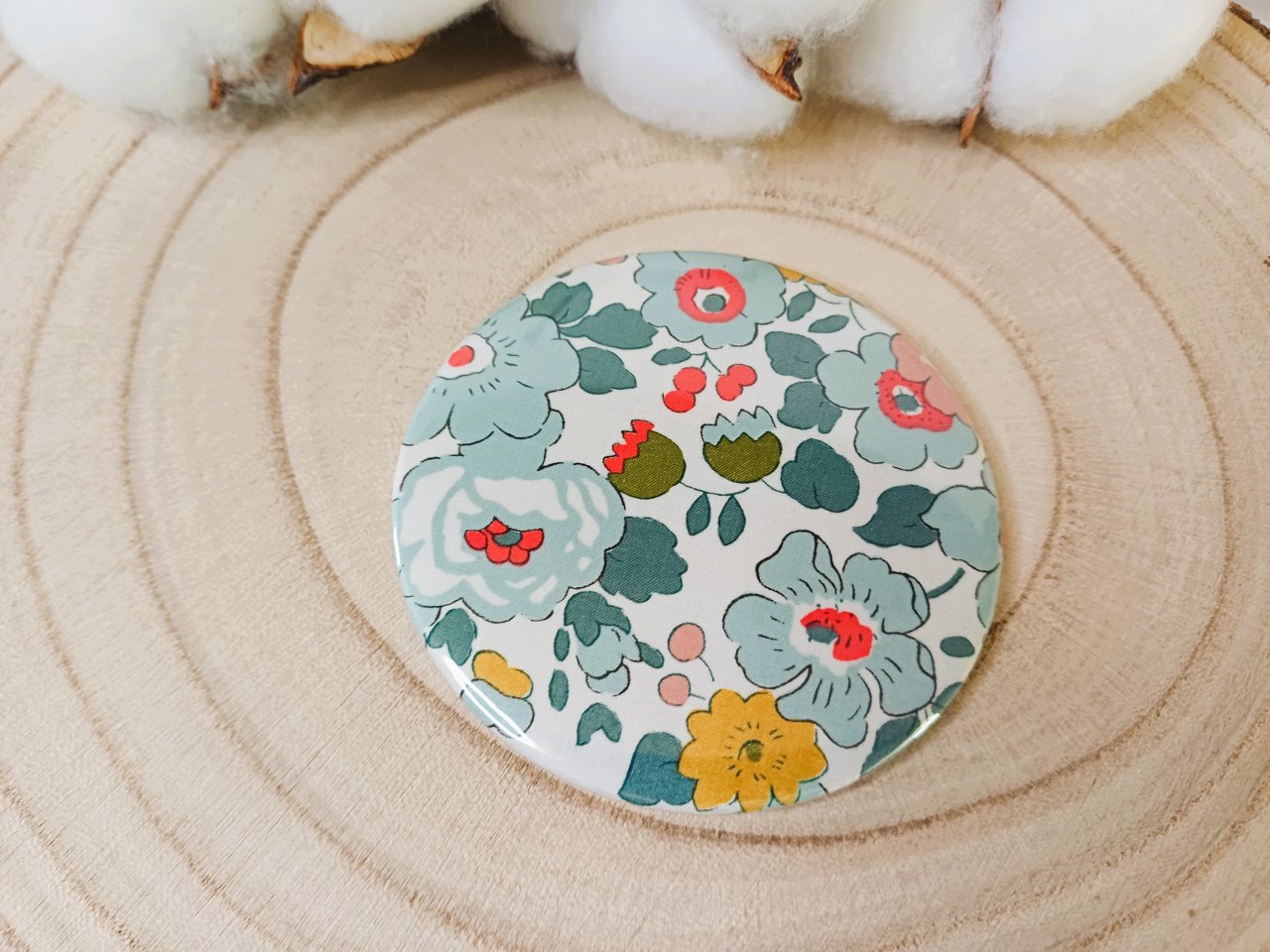 Miroir de sac avec au dos un beau tissu Liberty - coloris au choix