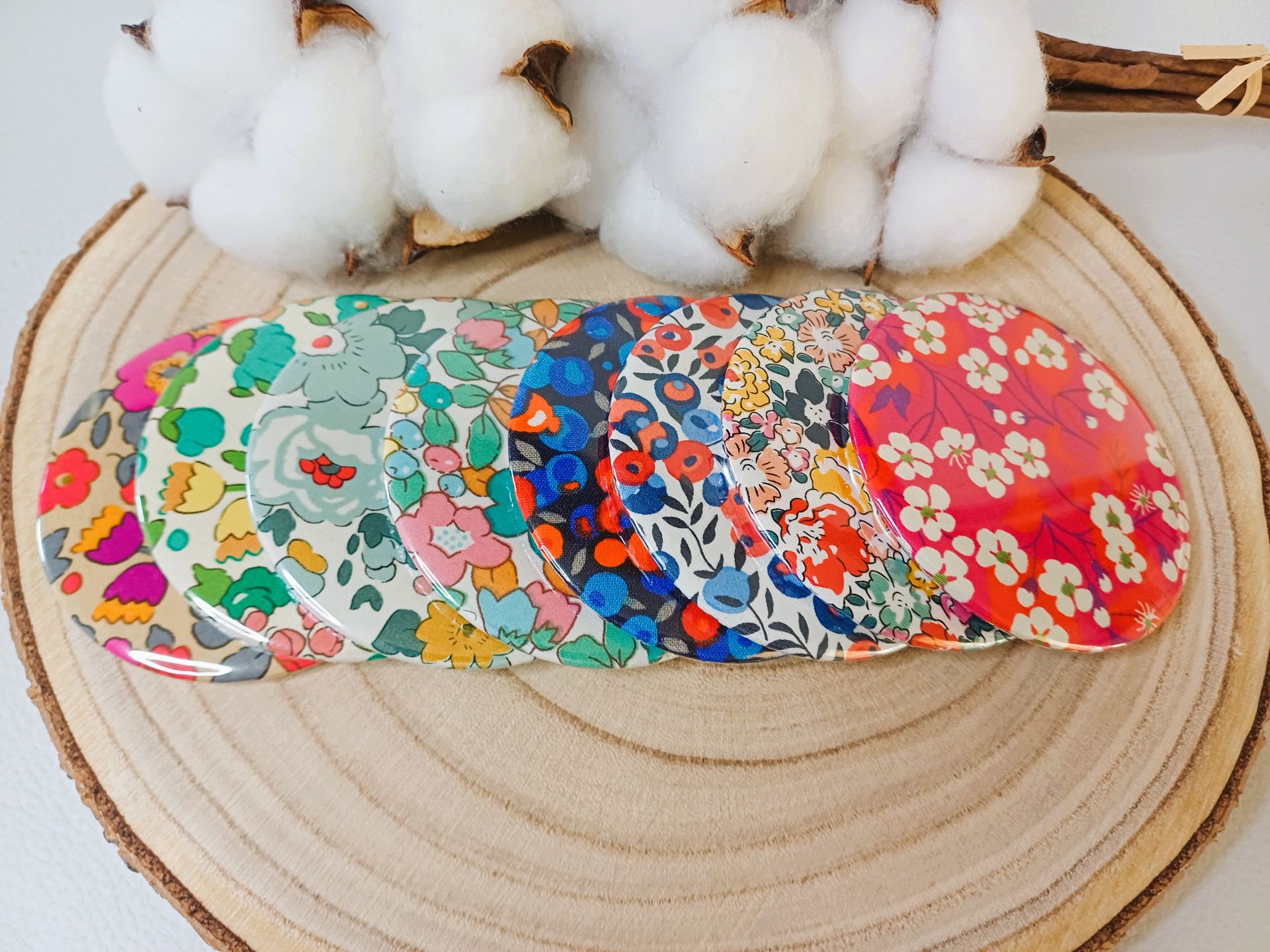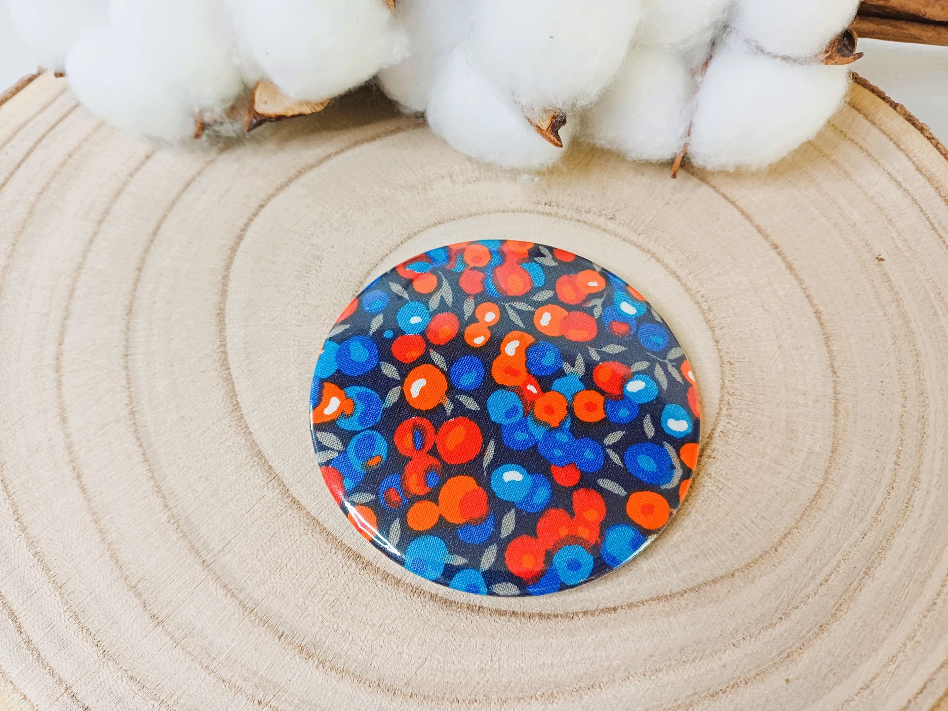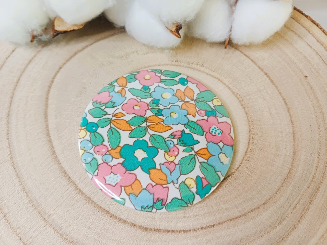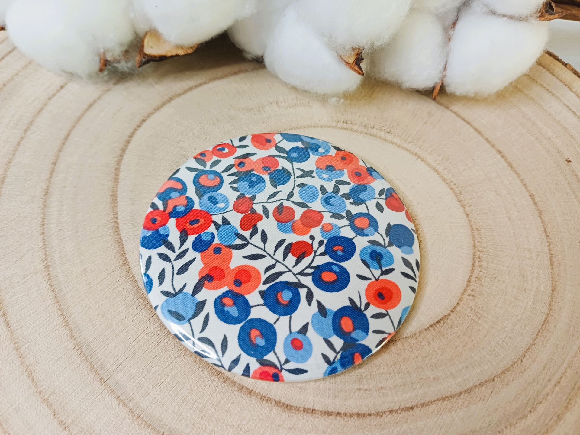 Miroir de sac avec au dos un beau tissu Liberty - coloris au choix
