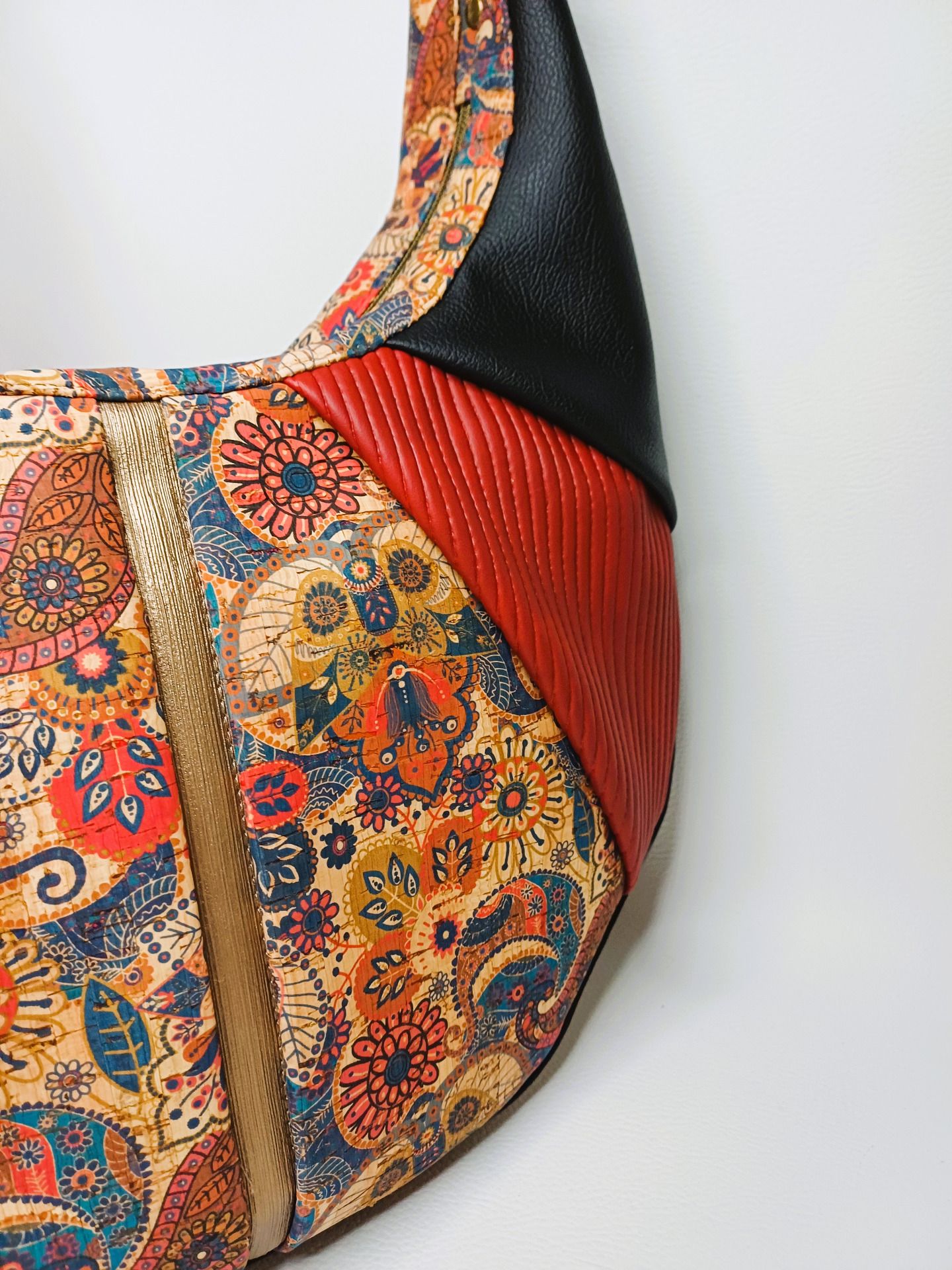 Tissu empiècement central (Simili à motif, simili glitter, liège, …) : 13 x 60 cm