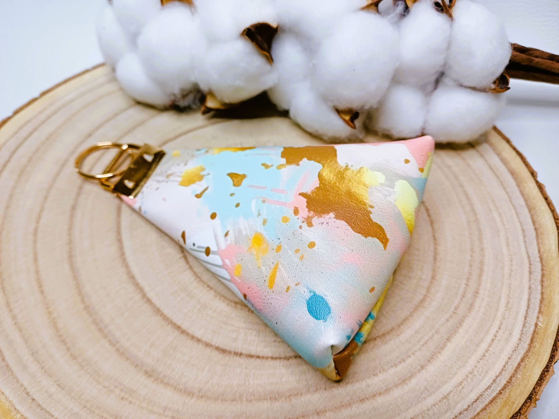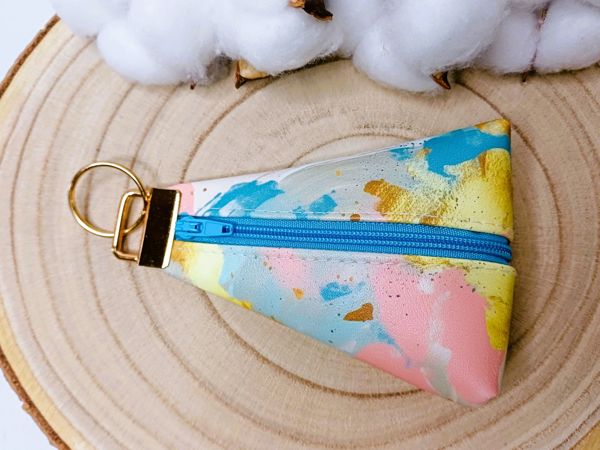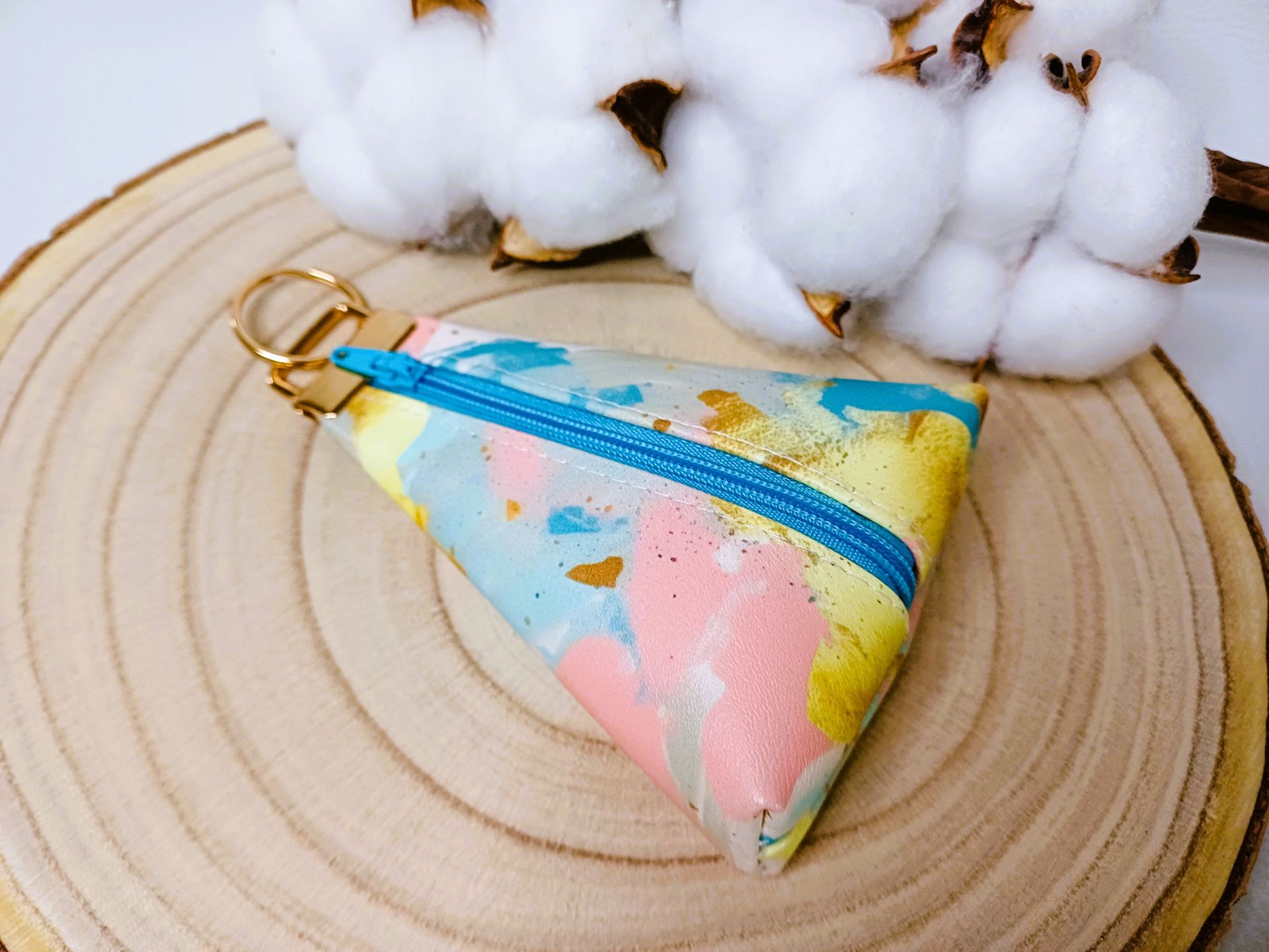 Porte-monnaie qui fait aussi porte-clés en simili à motif coloré "aquarelle".