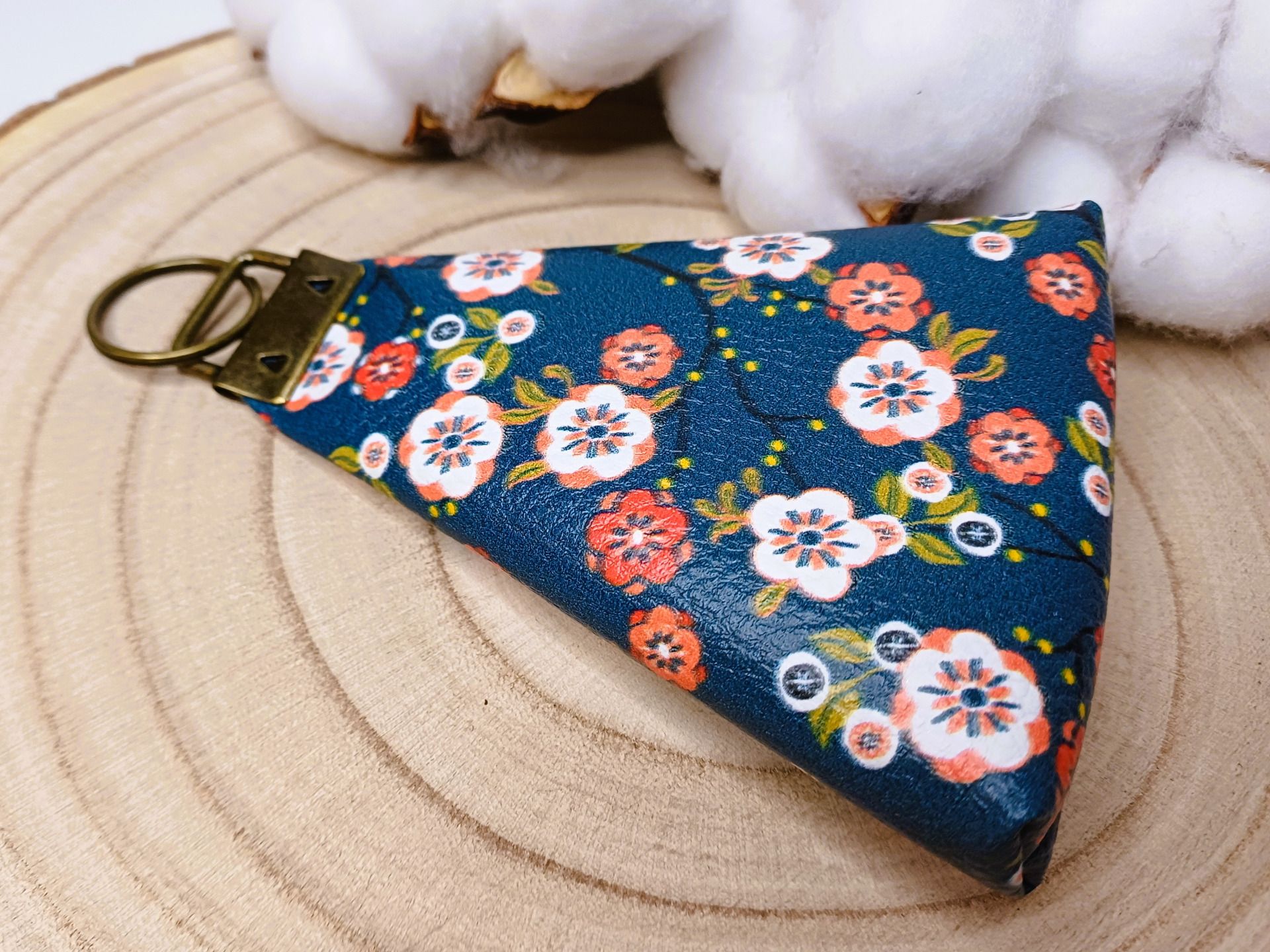 Porte-monnaie qui fait aussi porte-clés en simili à motif fleurs de cerisier