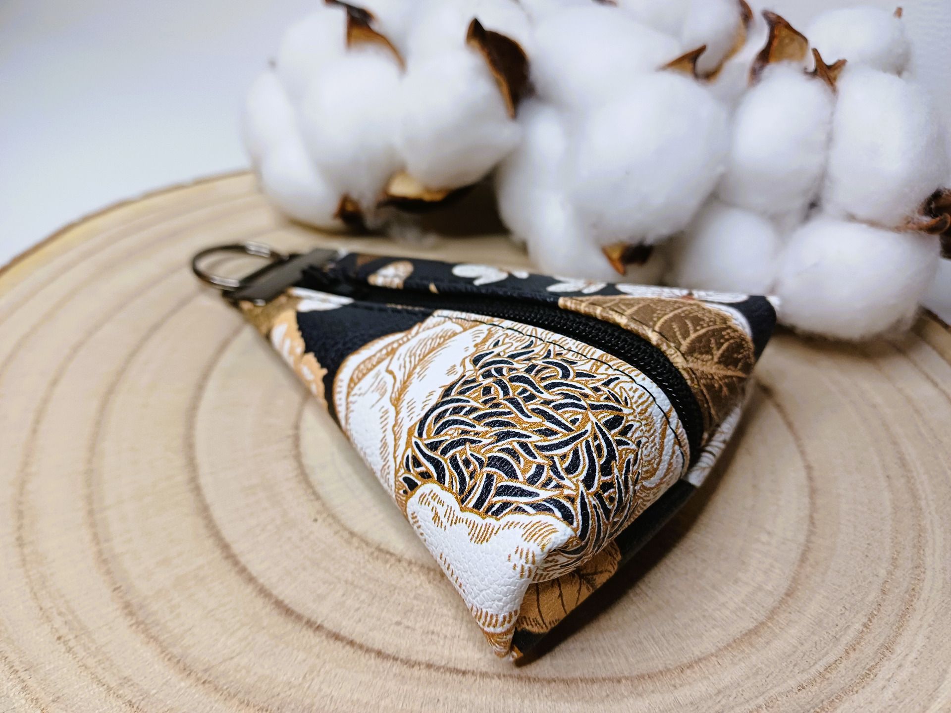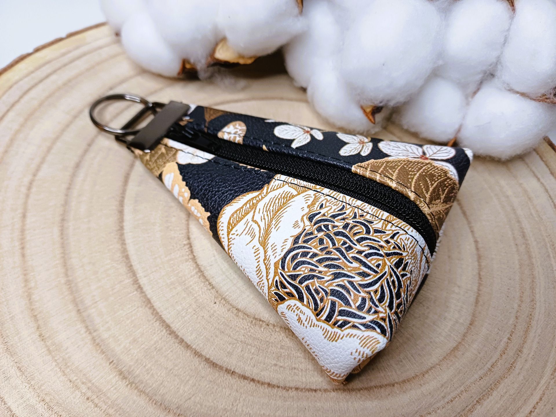 Porte-monnaie qui fait aussi porte-clés en simili à motif floral noir & blanc.