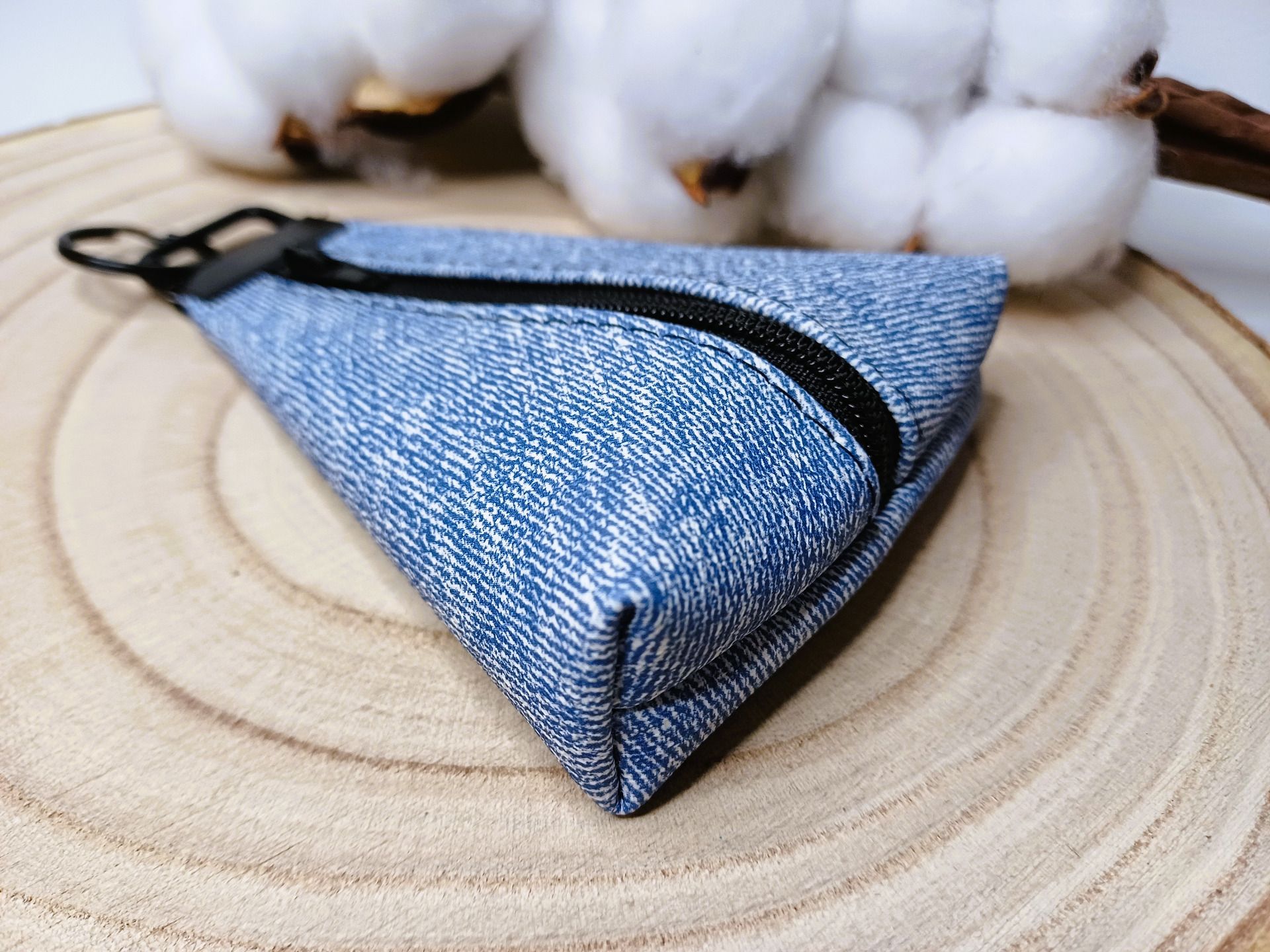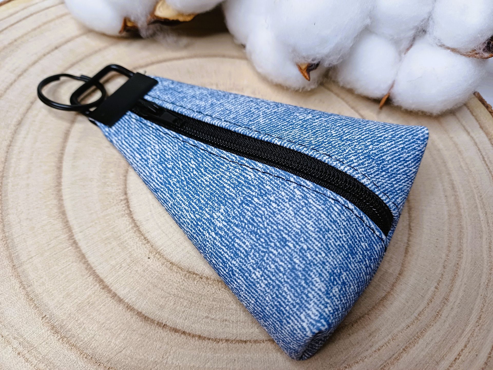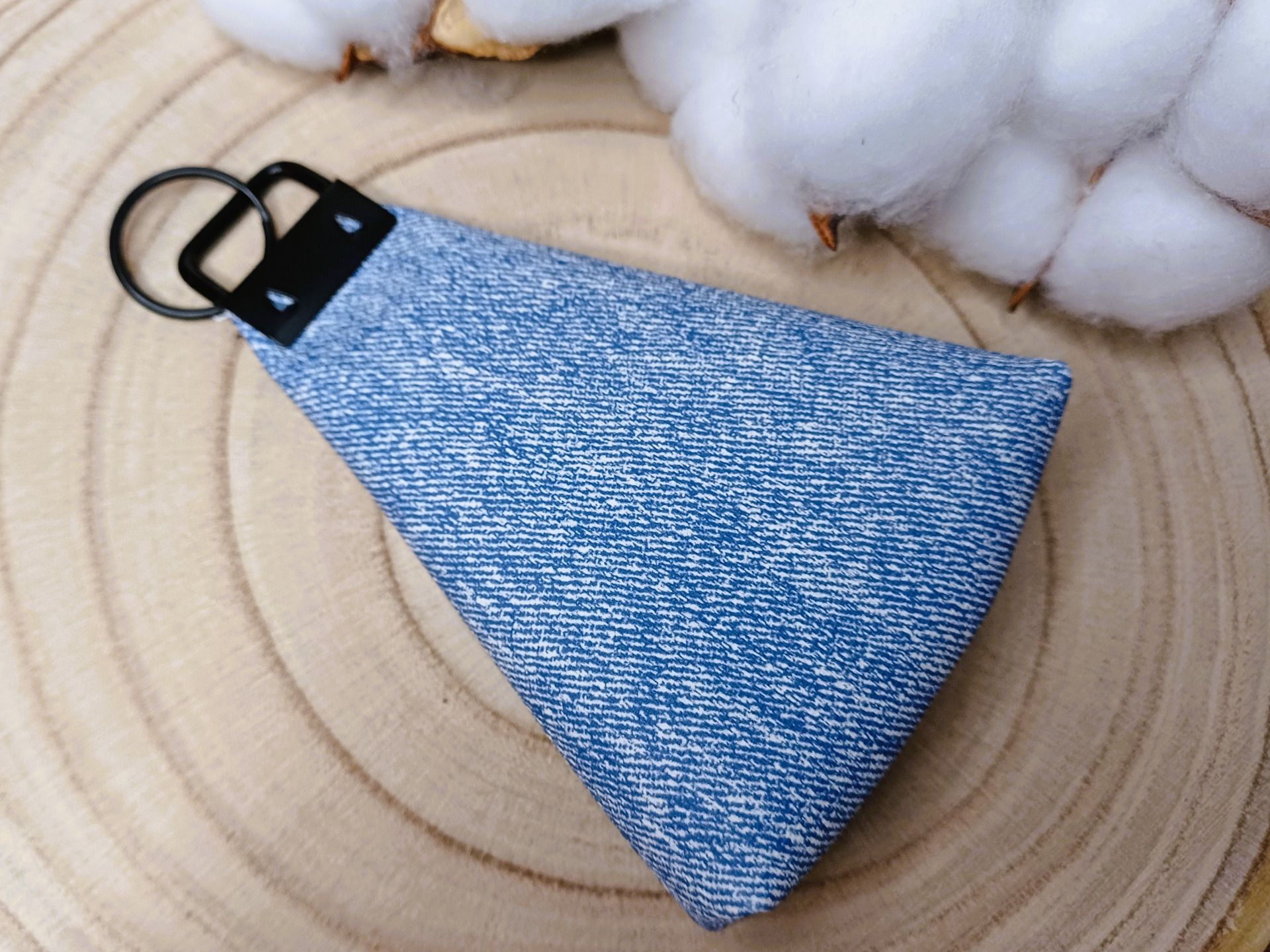 Porte-monnaie qui fait aussi porte-clés en simili jean clair.