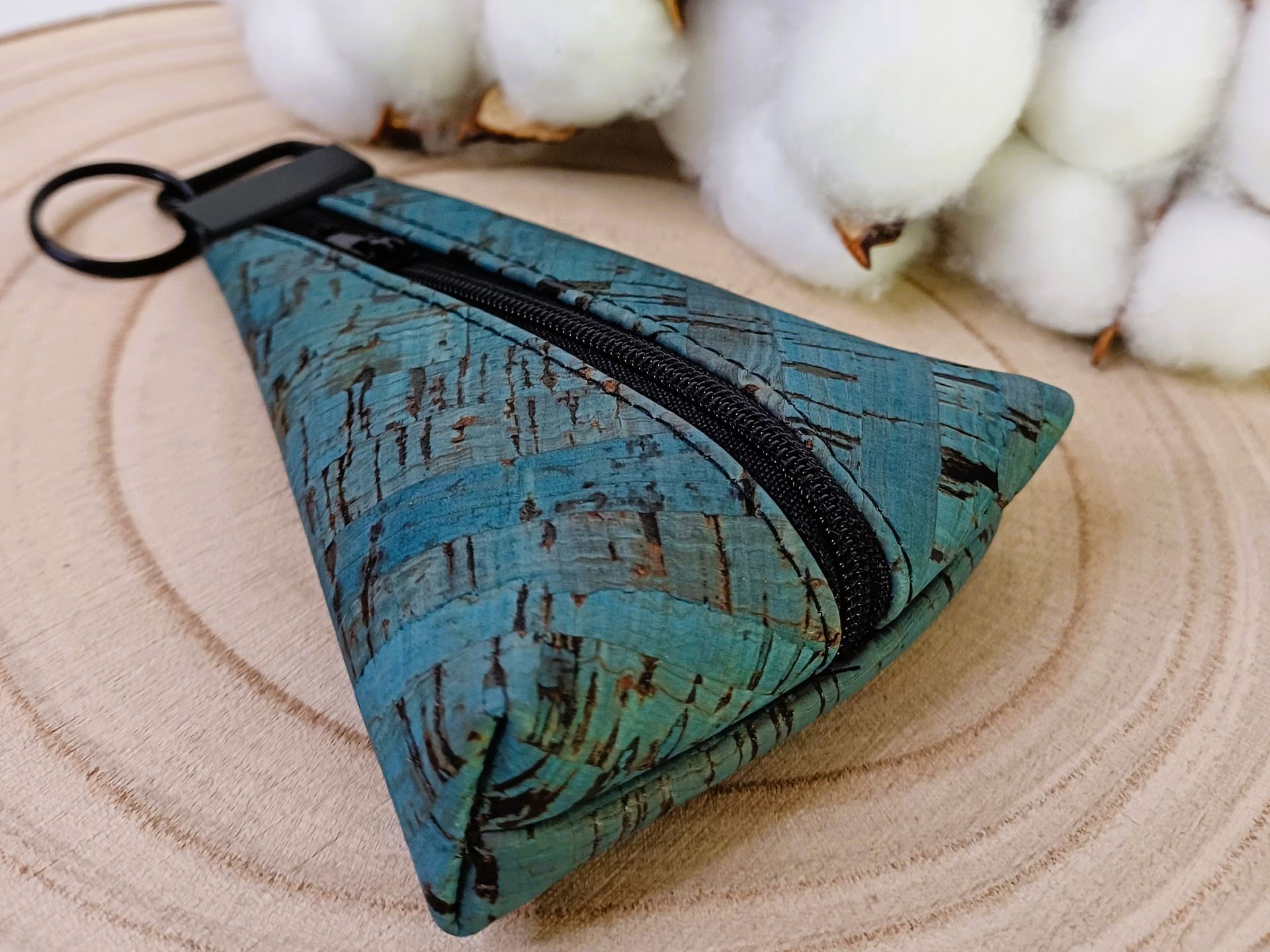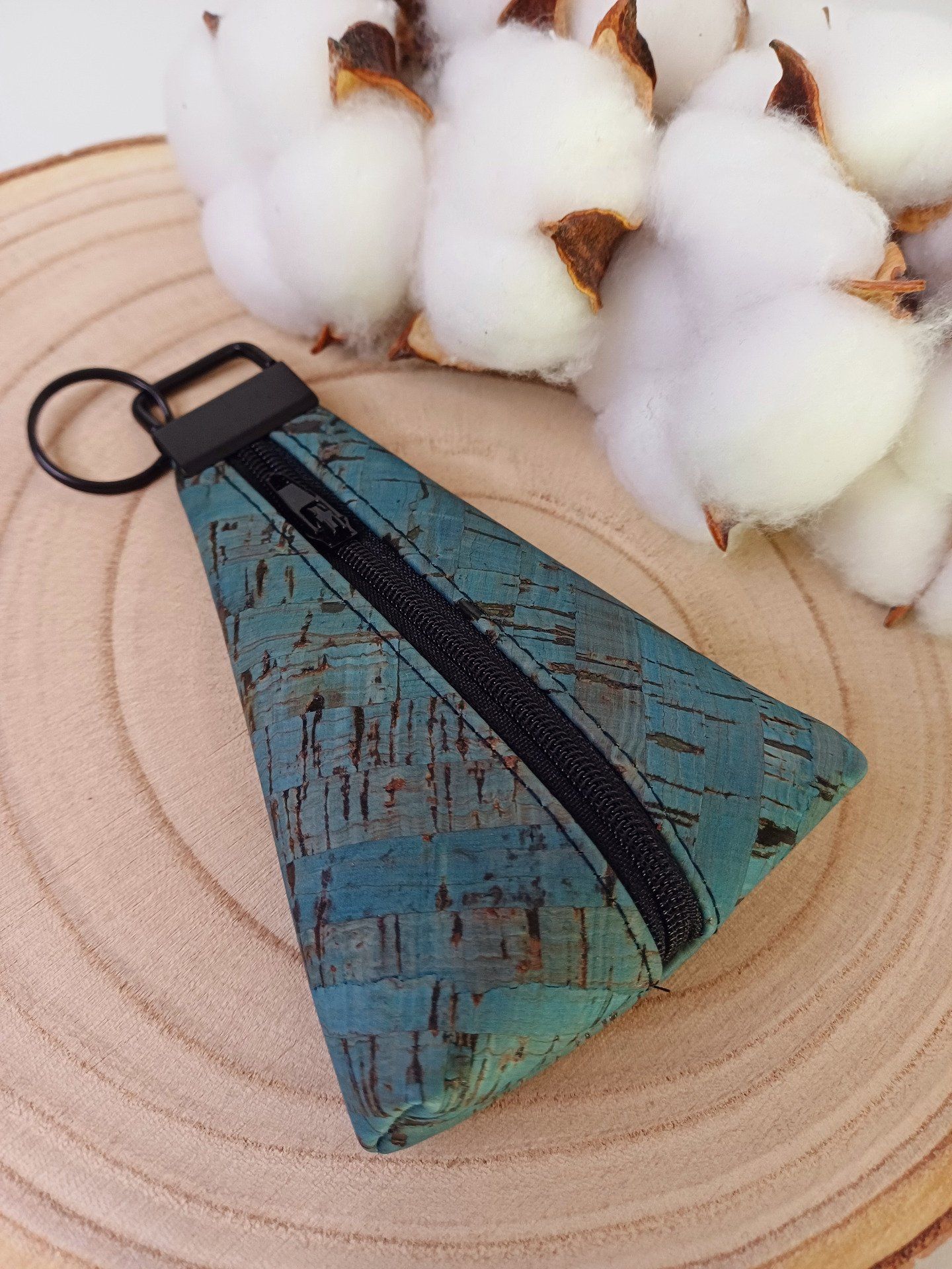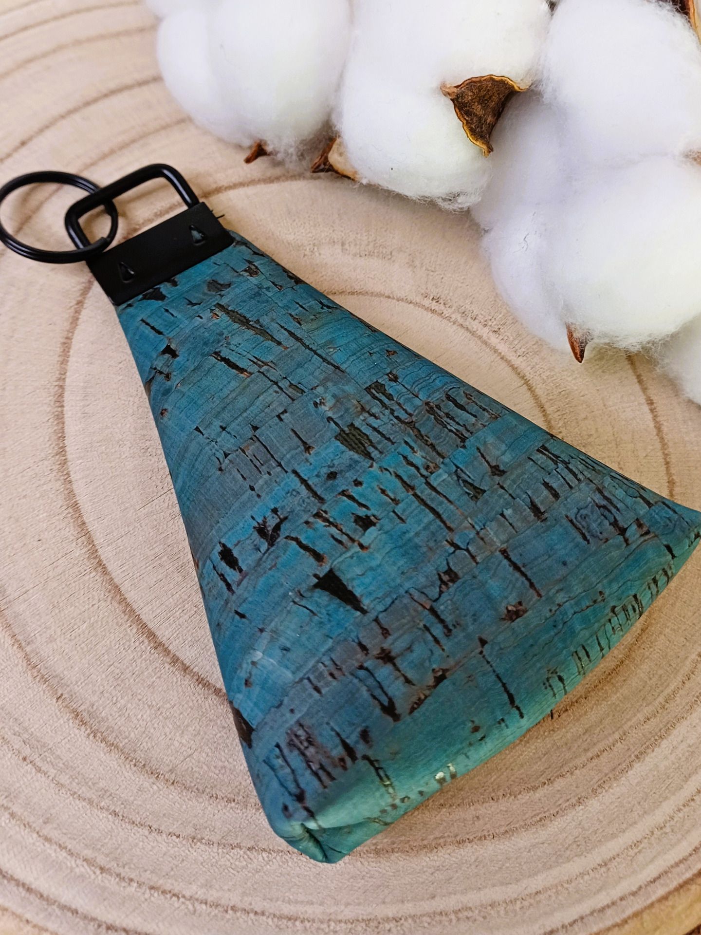 Porte-monnaie qui fait aussi porte-clés en liège bleu.