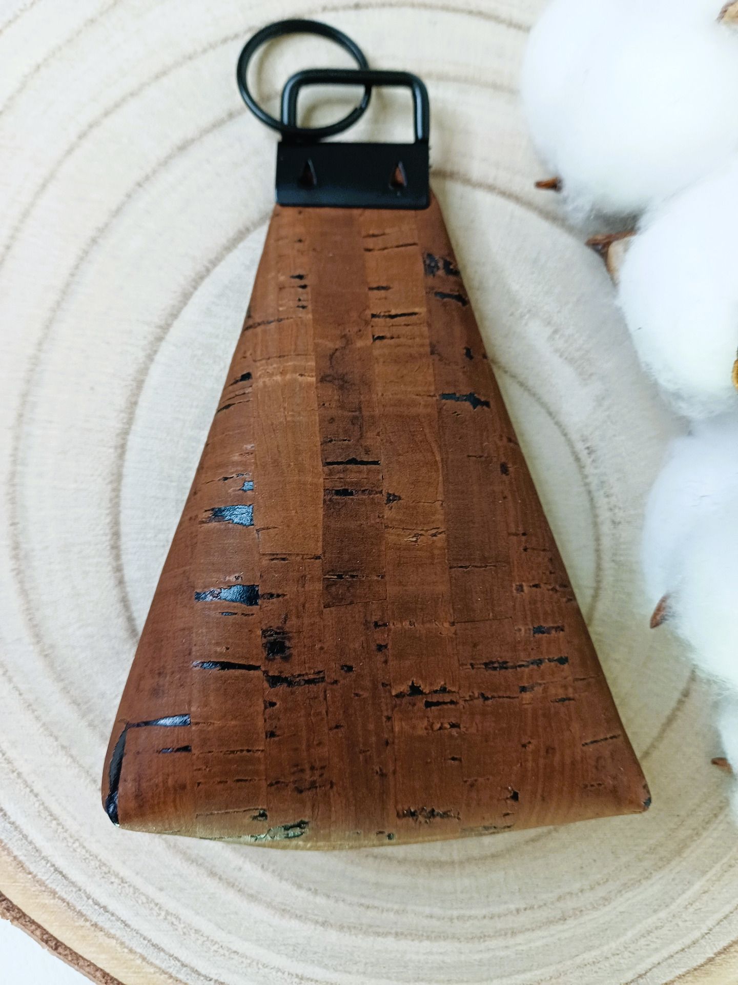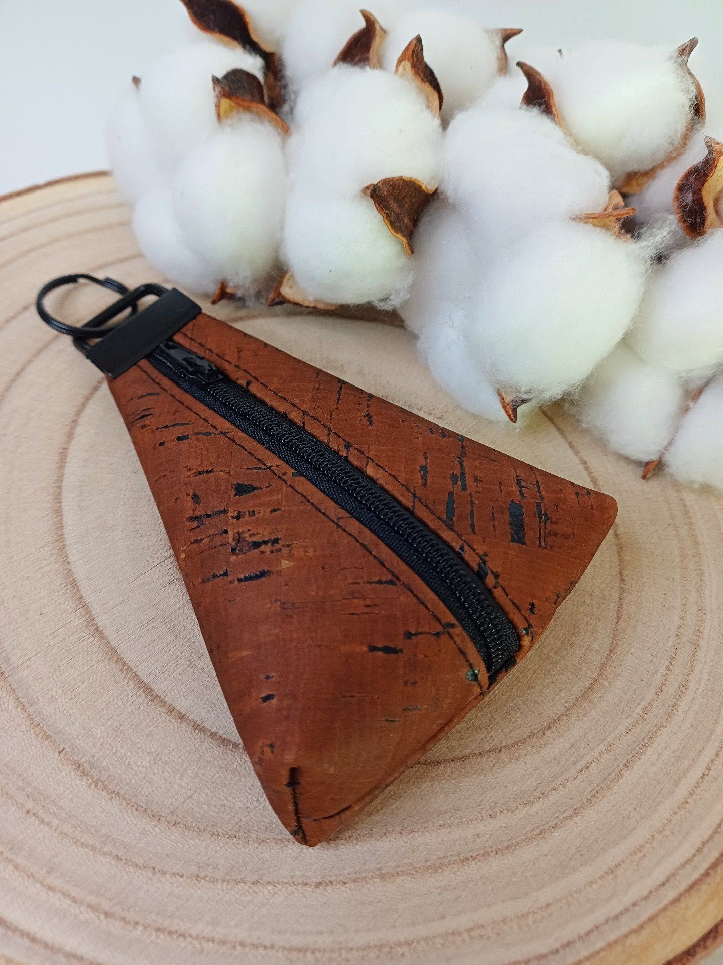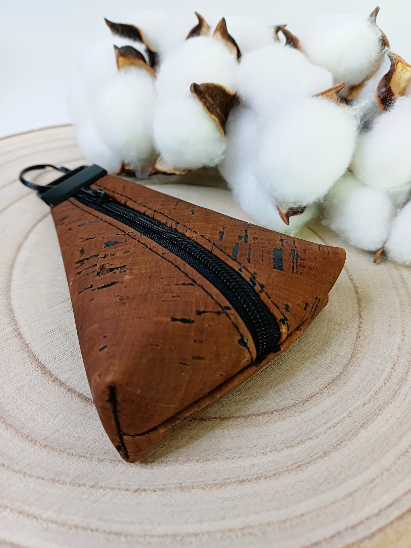 Porte-monnaie qui fait aussi porte-clés en liège marron.