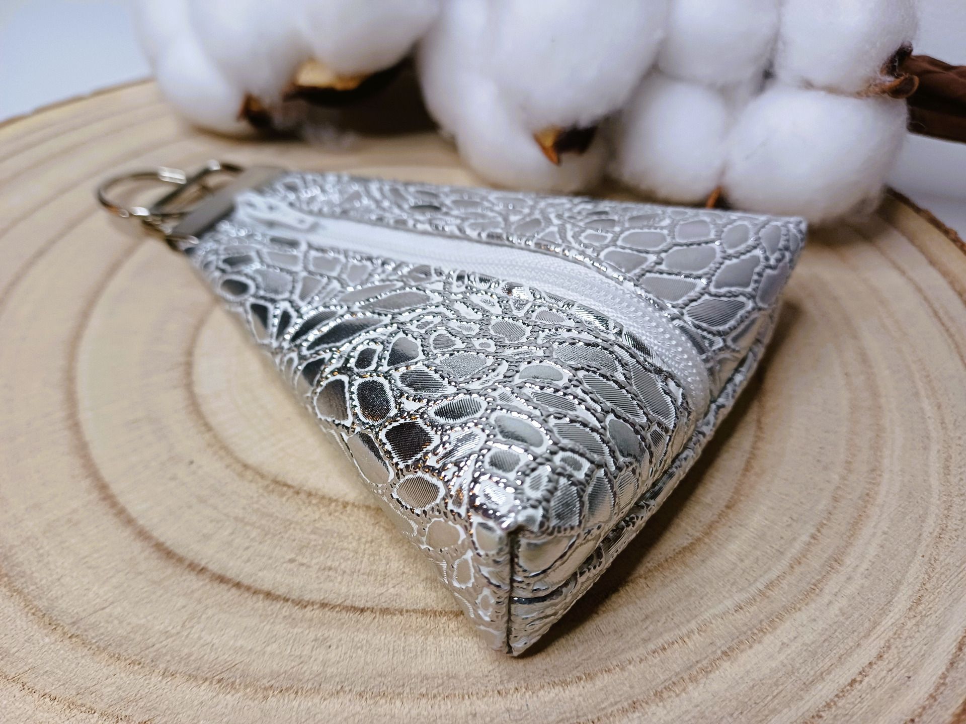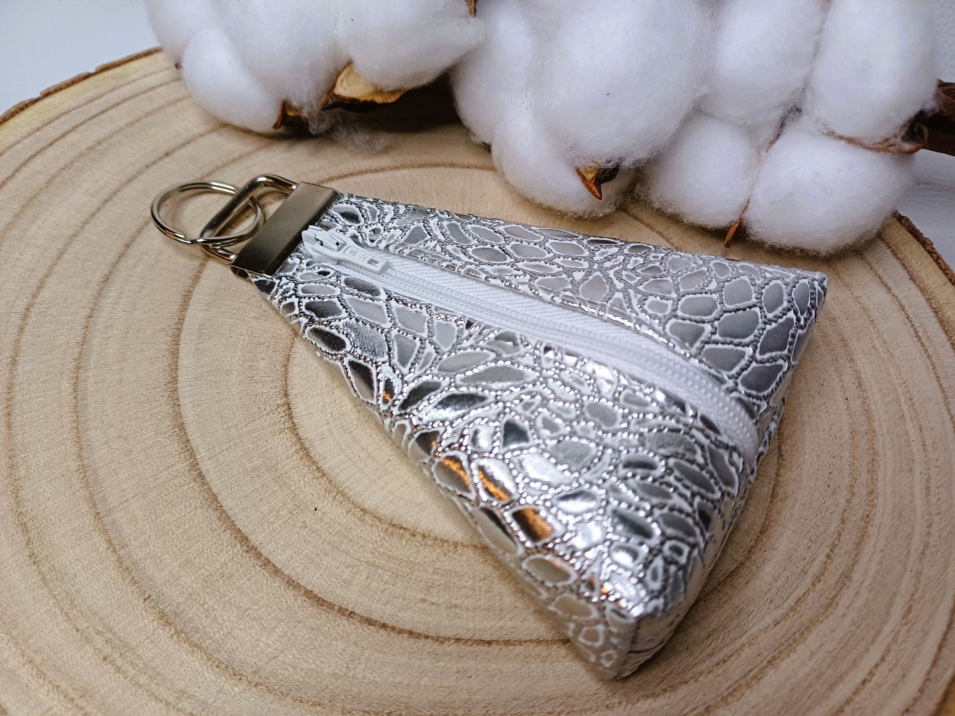 Porte-monnaie qui fait aussi porte-clés en simili à motif effet miroir.